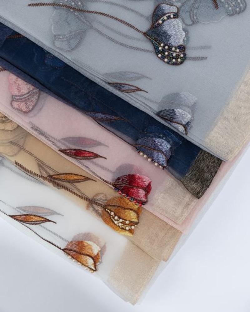 شال أورقانزا مطرز باللؤلؤ لون وردي