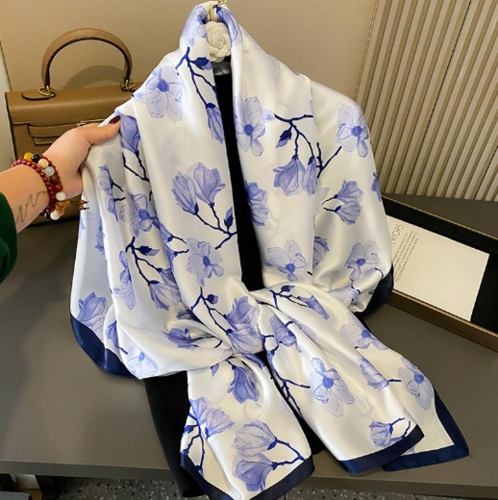 شال حرير| بطبعة أزهار الربيع البنفسجية