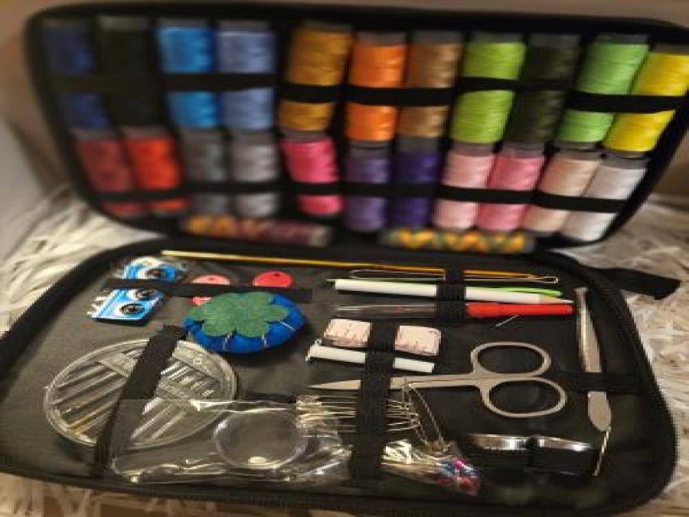 1. علبة خياطة شاملة:تضم خيوطًا وإبرًا متنوعة لكل أنواع الحياكة.